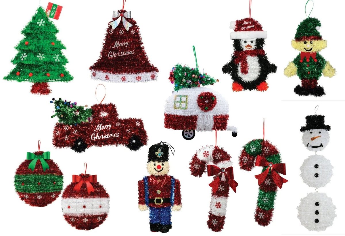 Christmas Holiday Large Tinsel Wall Decor Bells Trees Snowman Trucks Amp More Ebay